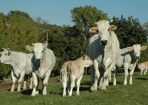 Alleviamo bovini di razza marchigiana per la produzione di carne e riproduzione.